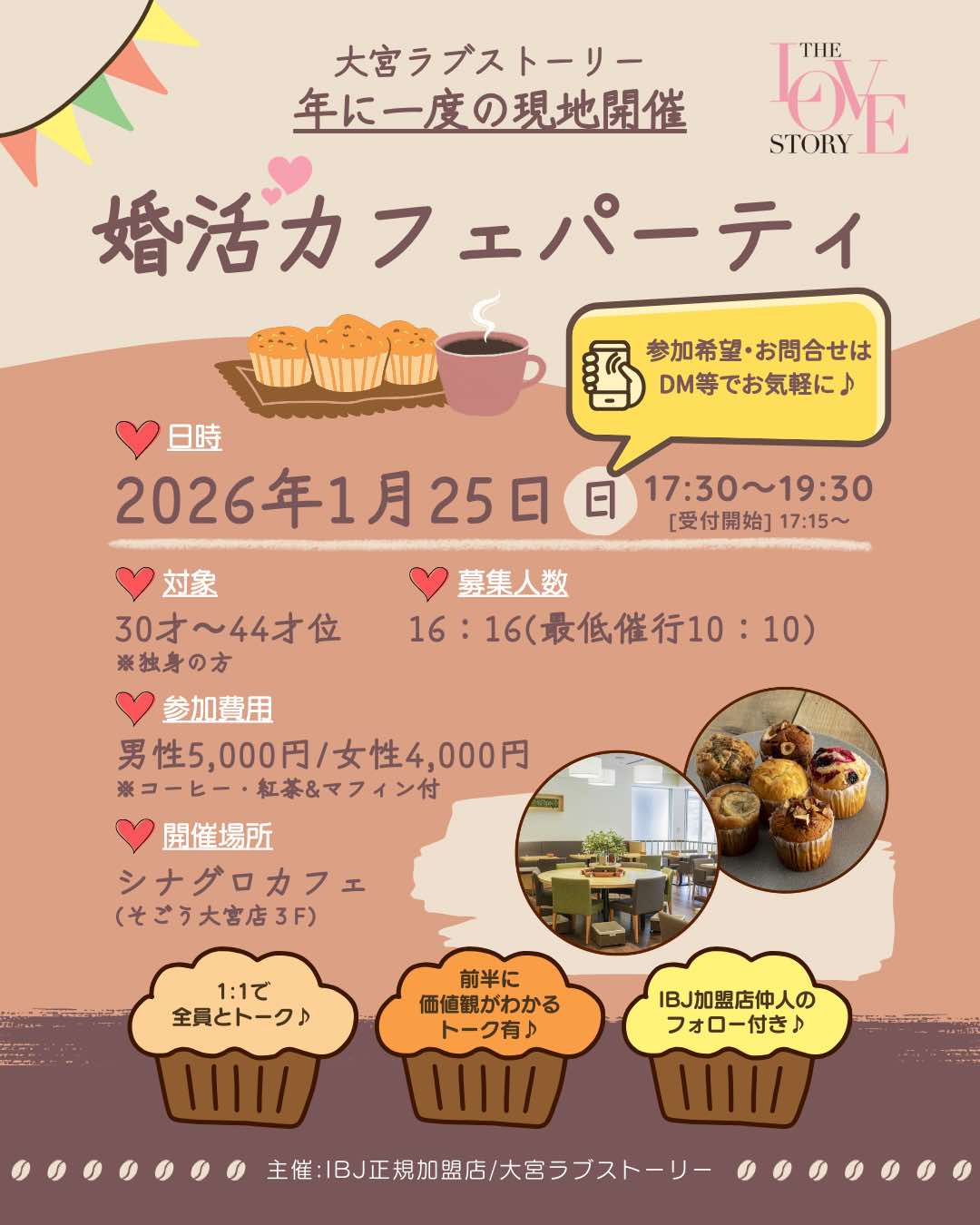 対面開催の婚活パーティー開催案内(大宮、2026/1/25、30歳〜44歳)